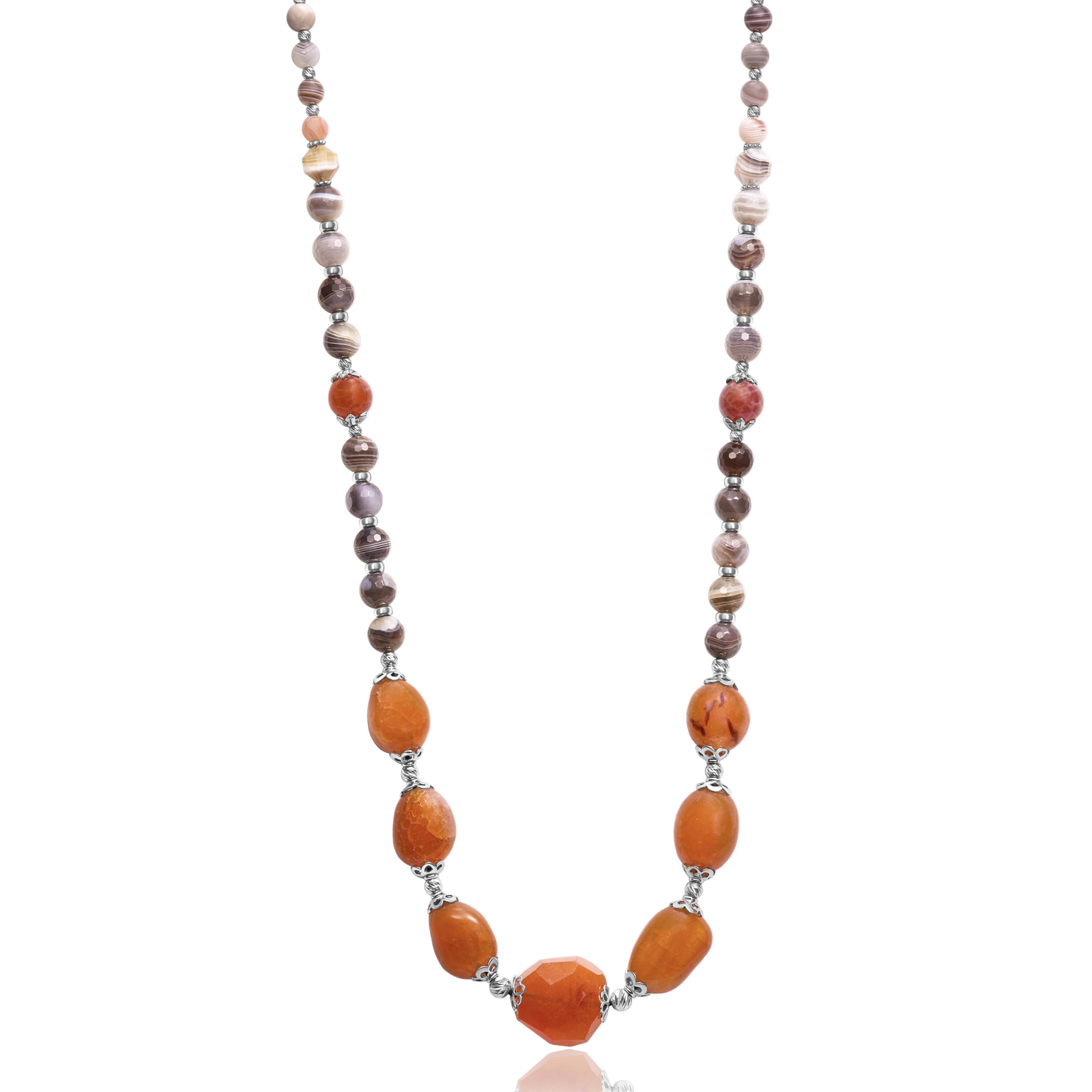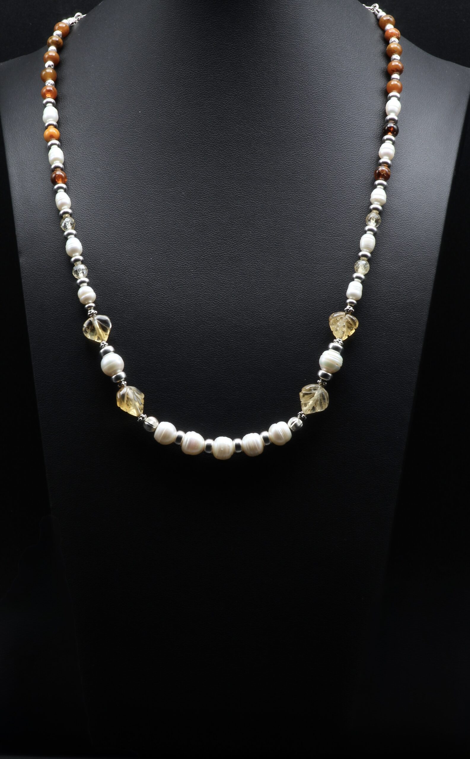 - השרשרת מעוצבת במראה ייחודי, המשלב אבני חן טבעיות בצבעים חמים ומרגיעים, אשר מעניקים לה נופך של זוהר ואלגנטיות.