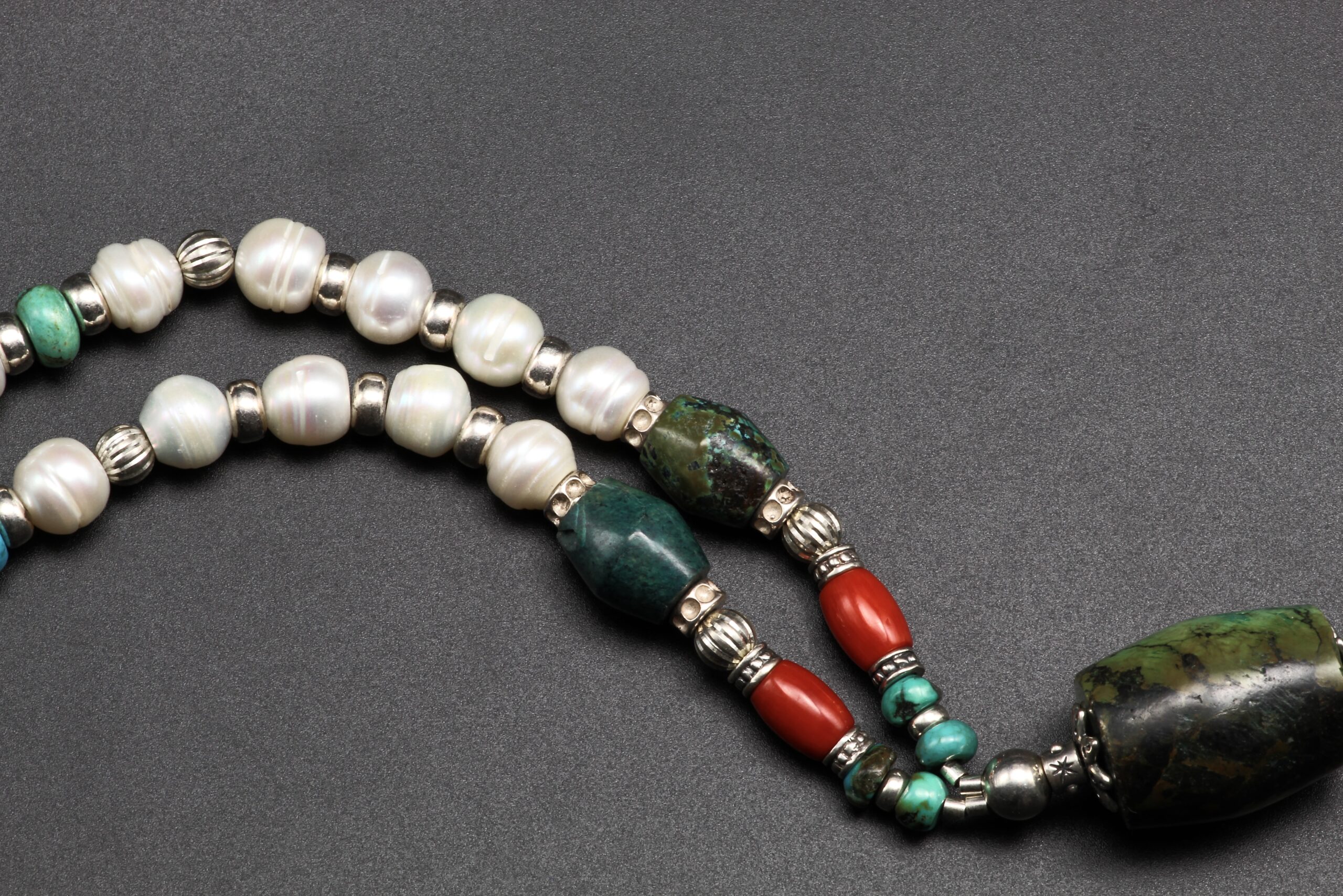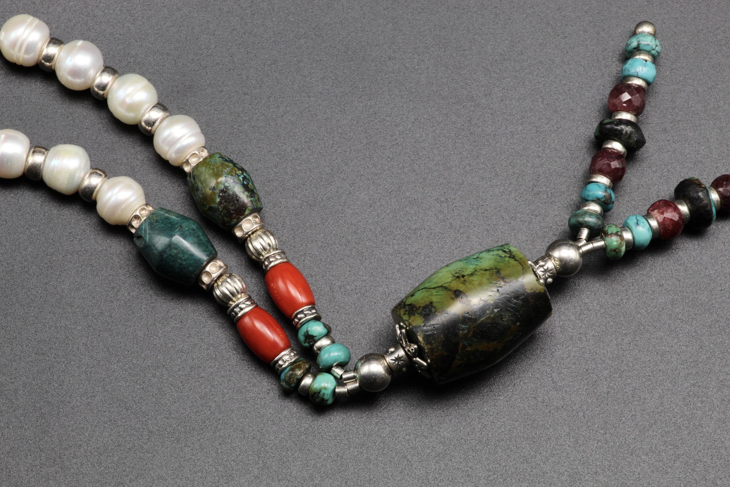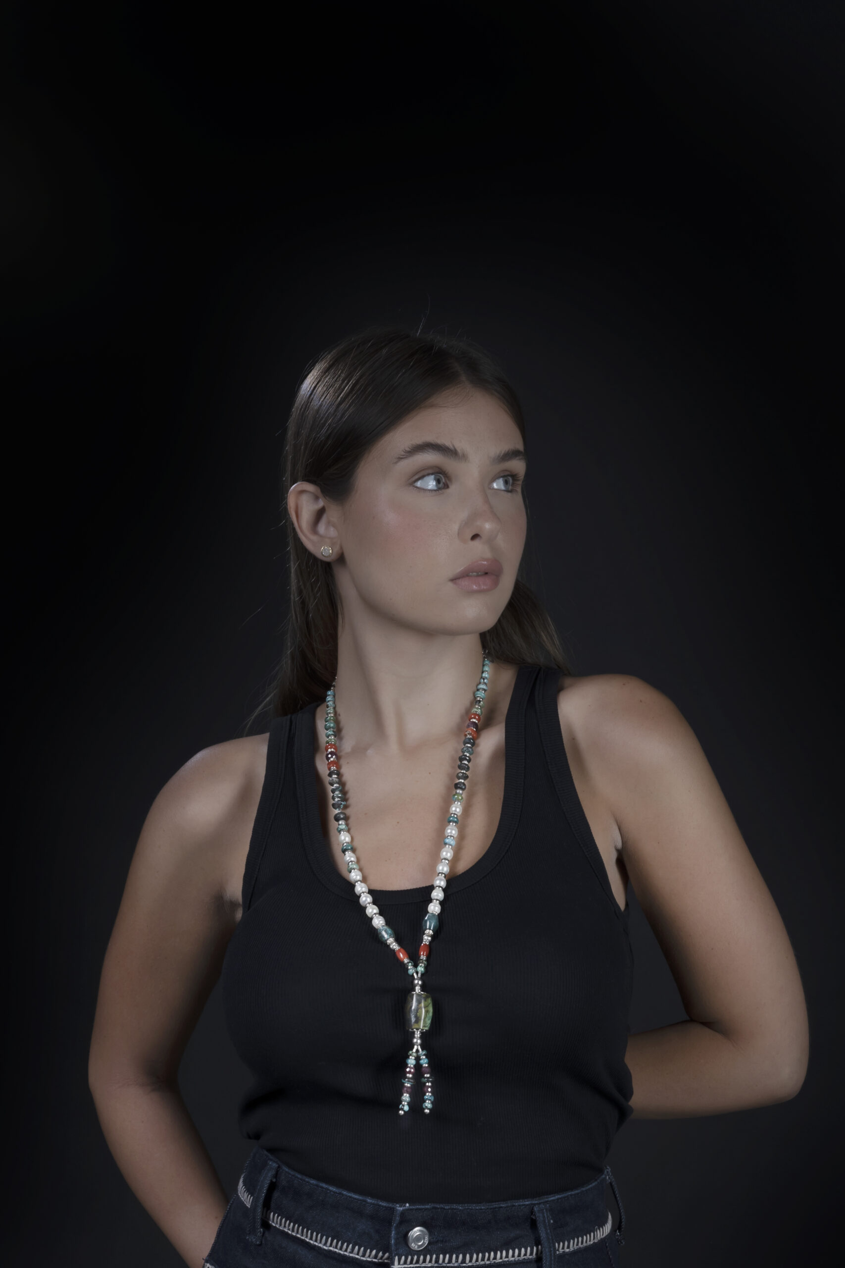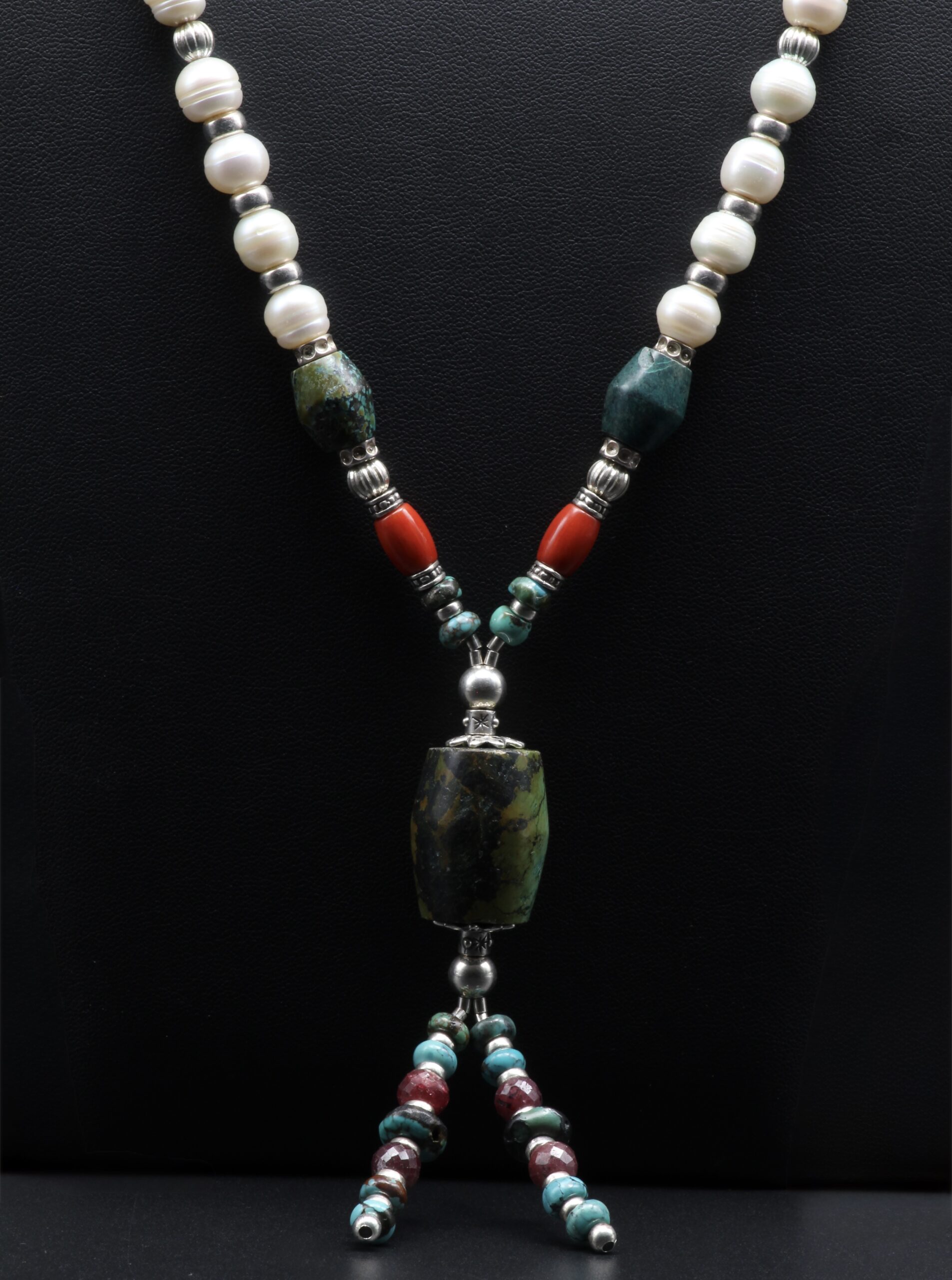 - גוון המתכת הטבעי של סילבר סטרלינג 925 משתלב עם הפנינים ויוצר קונטרסט רגוע מול האבנים האינטנסיביות.