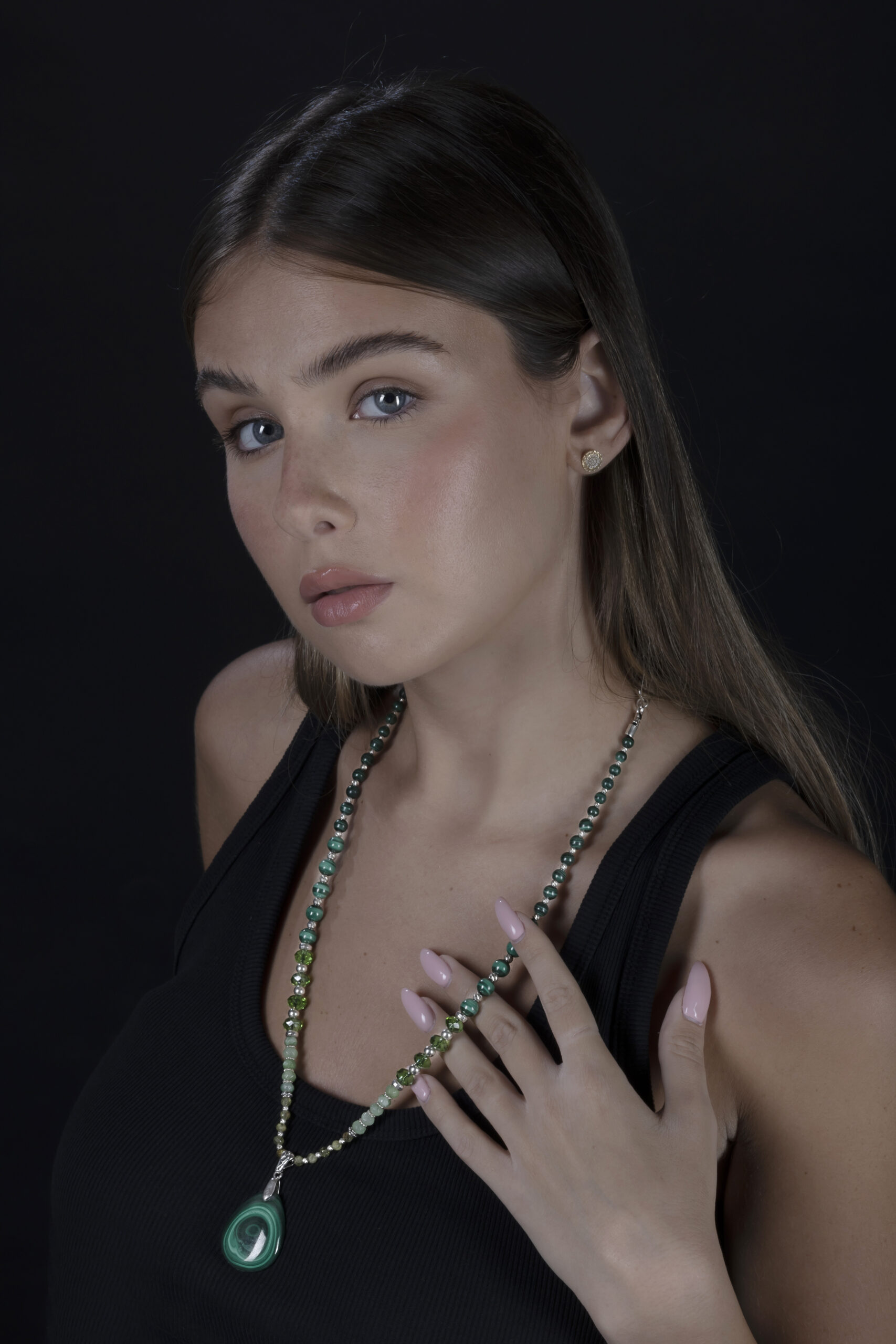 השרשרת מקולקציית אורנוס שואבת את כוחה מהגוונים החיים של הטבע – שילוב מדויק של אבנים, צבעים ומתכת המעניק תחושת רוגע, איזון ונוכחות.