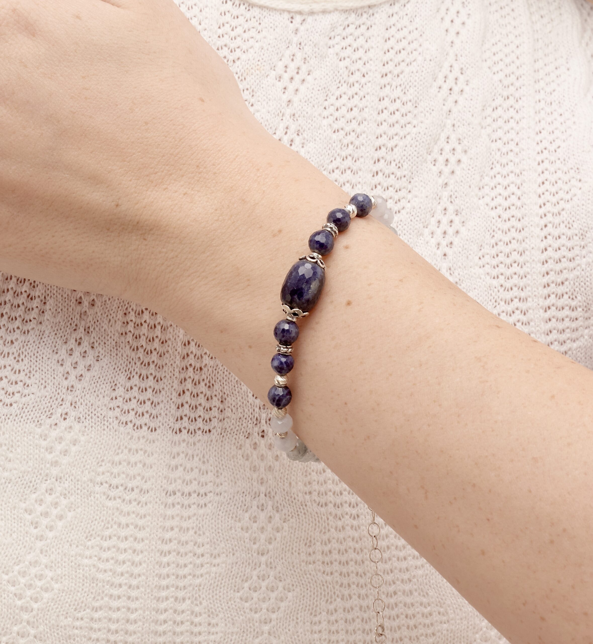 - שילוב של אבני חן טבעיות בגוונים מרעננים ורגועים המוסיפים נופך של שלווה ותחכום.